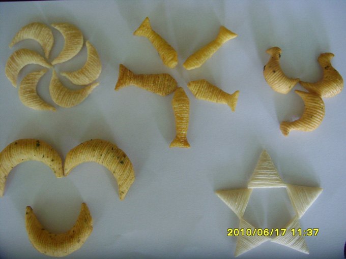 妙脆角、黃金角、小魚酥、寶葫蘆生產線妙--簡介:生產線油炸面食膨化生產線適用于將面粉等原料通過壓輥進行壓制加工,采用特制機構分切成不同的形狀,并經過油炸使其膨化。油炸后再進行調味與烘干,既制成美味可口的休閑食品。該生產線設備設計合理,操作簡單。此設備為我公司人員自主開發研制,在整形處細微入妙,是的產品形狀更加立體化,此設備還可生產三角形、葫蘆形、小魚酥、黃金角、小鴨子等產品。產品造型美觀,品味高檔,可油炸,非油炸,入口酥脆即化,口感酥脆,營養豐富,是投資者降低成本,賺取更多利潤的最新型面食機械。
