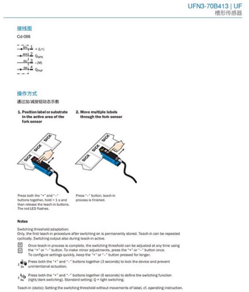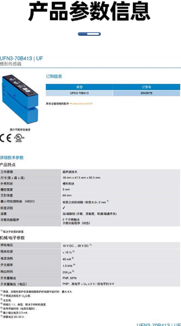 SICK 西克 UFN3-70B413 槽型標簽傳感器 超聲波貼標機槽型款光電開關透明標簽識別檢測傳感器TEL:13910098771