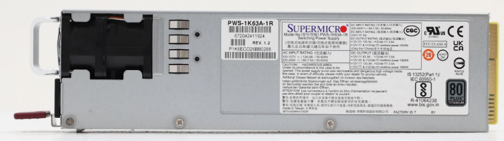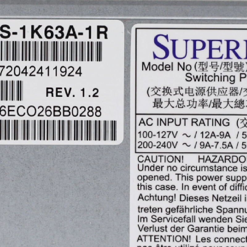 SuperMicro PWS-1K63A-1R 1600W交換式電源供應器 1U 超微服務器冗余電源模塊、熱插拔電源模塊